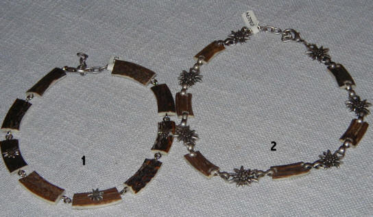 1. Collier aus echtem Hirschhorn mit Edelweißbesatz