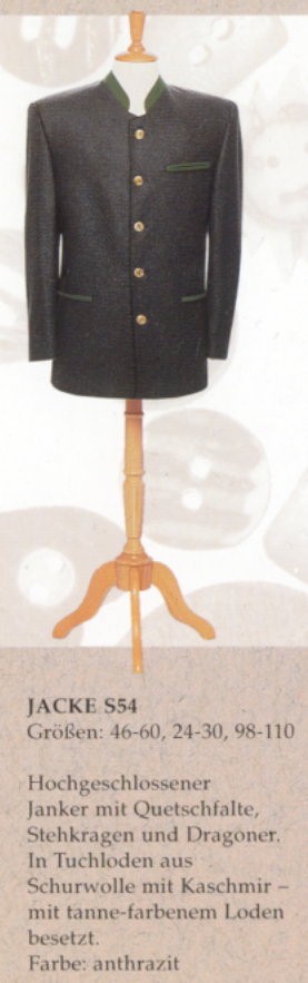 Traditionell gearbeiteter Janker mit Quetschfalte und Dragoner, mit drei Innentaschen und echten