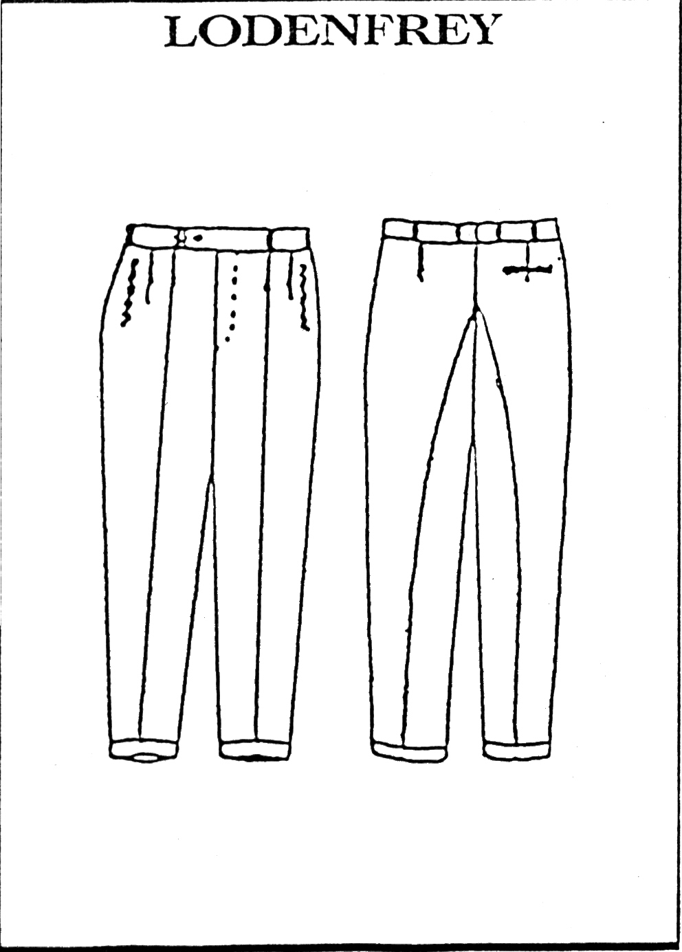 Taschen sind Tannengrün besetzt. Die dazugehörige Bundfaltenhose ist aus
