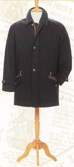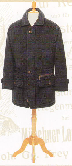 nur einige Attribute, dieser aus weichem, geschmeidigem Loden gefertigten Jacke. Details aus braunem Amaretta betonen die natürliche Eleganz. Kragen